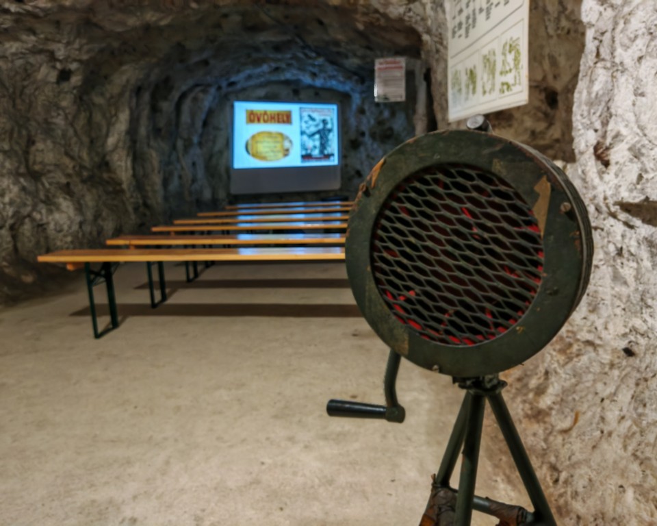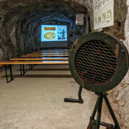 Az érdeklődők betekinthetnek Veszprém egyetlen fennmaradt polgári óvóhelyébe. A hatalmas sziklatömbbe vájt alagútrendszerben végig kalauzoljuk a látogatókat. Vetítéssel visszarepülünk a múltba, érzékelhetjük milyen is volt egy óvóhelyen tartózkodni a háborús időkben. Fotókiállítással szemléltetjük Veszprémet ért háborús pusztítást. A látogatókat folyamatosan fogadjuk. Zseblámpa, meleg öltözet javasolt! HA TESZ- Jó lesz!