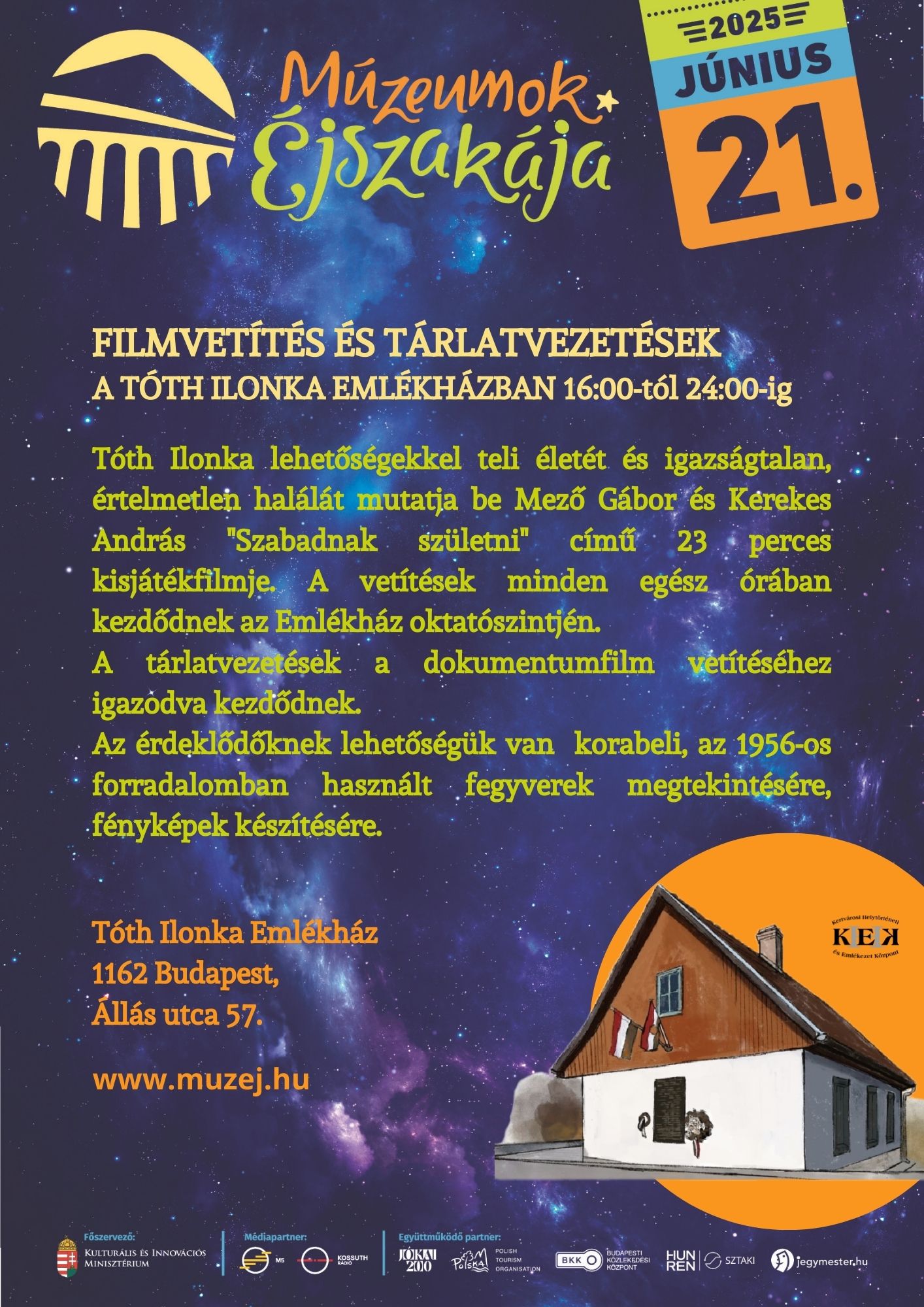 FILMVETÍTÉS ÉS TÁRLATVEZETÉSEK A TÓTH ILONKA EMLÉKHÁZBAN 16:00-tól 24:00-ig