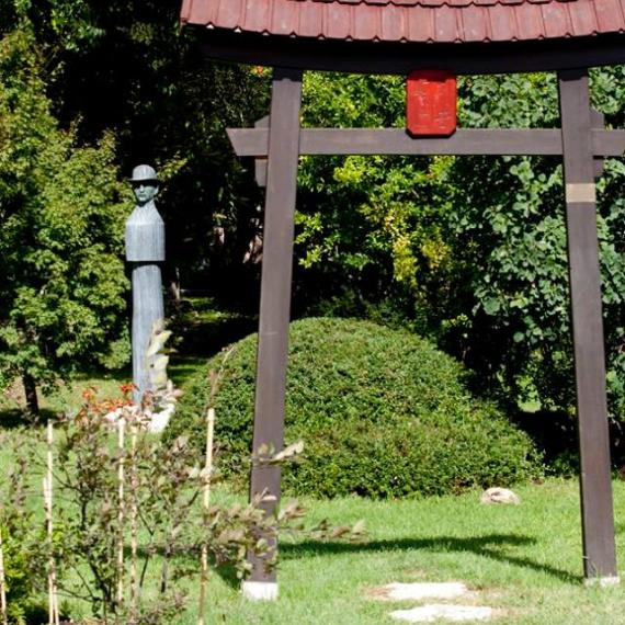 A Torii kapu a kert bejárata, innen lépőköveken haladva kertészmérnök szaktanáraink mesélnek a