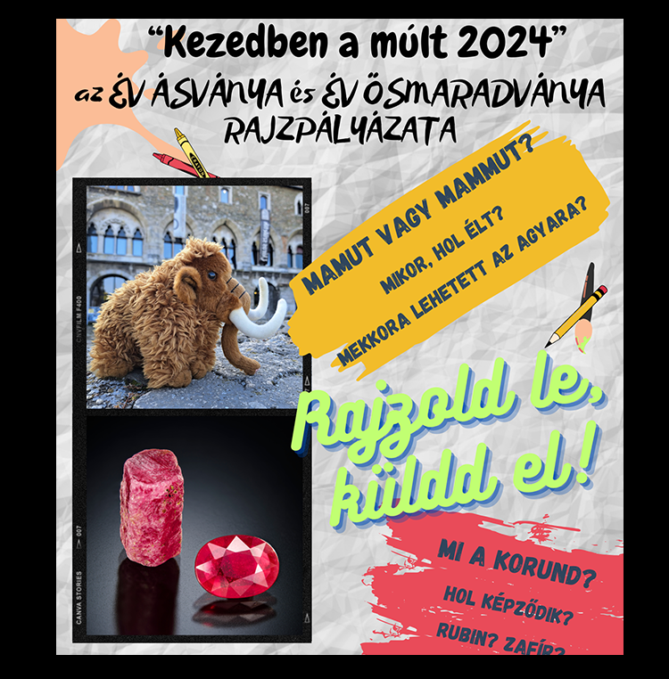 Az Év ásványa és Év ősmaradványa ismeretterjesztő program rendszeres rajzpályázatának idei átadó ünnepsége, melyhez a rajzokat kedvelő látogatóink is csatlakozhatnak. A gyerekek személyesen vehetik át díjaikat és megismerkedhetnek a többiek rajzaival. A pályaművek a tavalyi nyertesekről: a korundról és a gyapjas mamutról készültek. Az alkotások digitálisan kerülnek bemutatásra az ünnepség során.