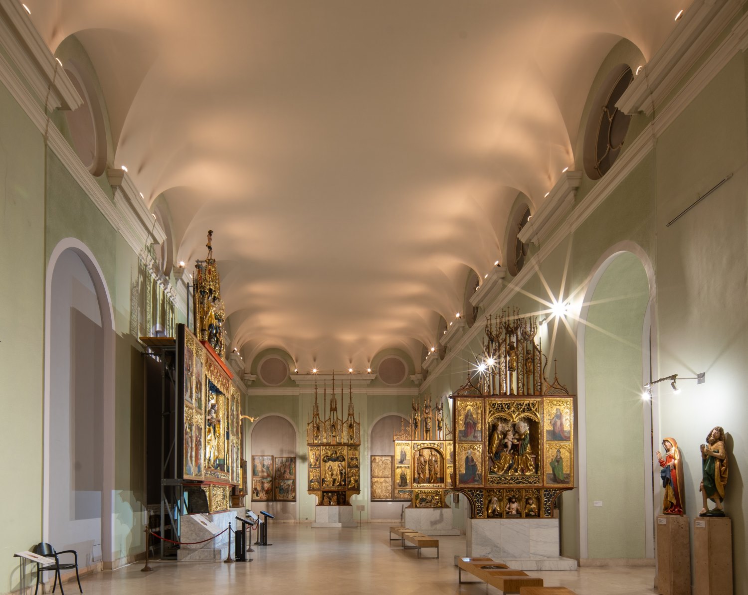 A földi szegénységről és a mennyei gazdagságról a késő gótikus szárnyas oltárok remetéi, szentjei és vértanúi mesélnek nekünk.